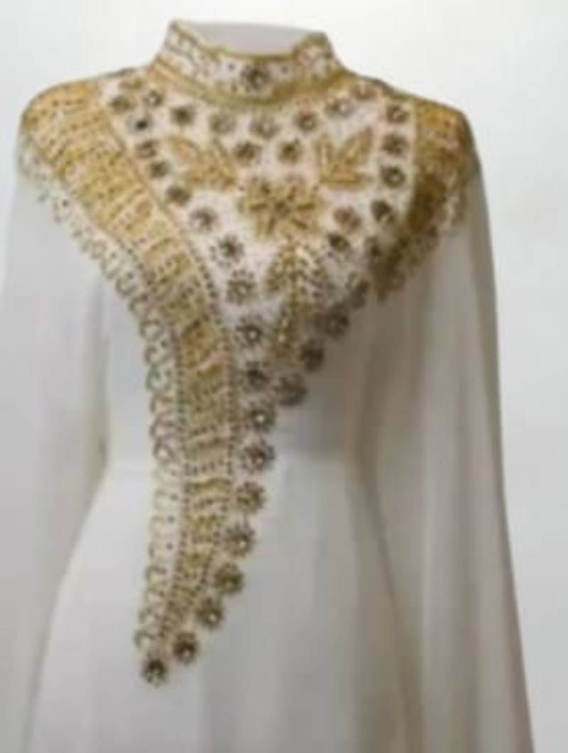 Product Name Luxurious White Kaftan With Gold Work Stitched Dress