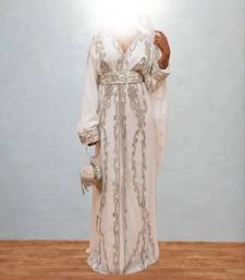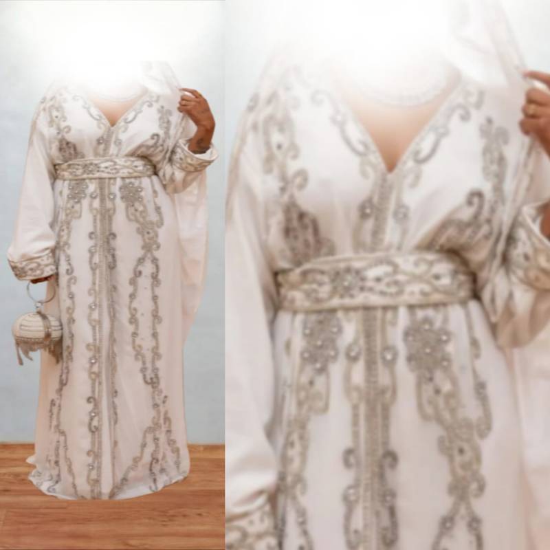 Luxurious white kaftan with silver work stitched dress