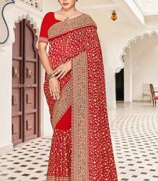 Red zarkan embroidered georgette designer saree for women