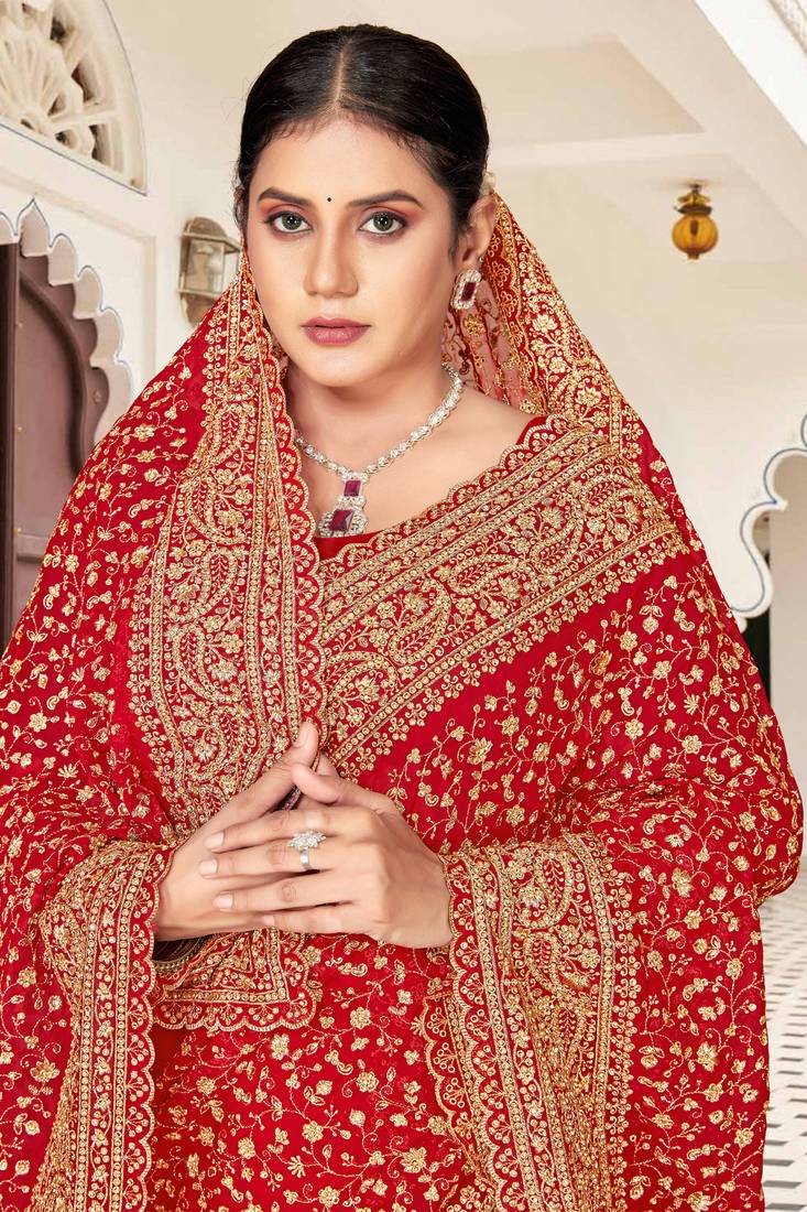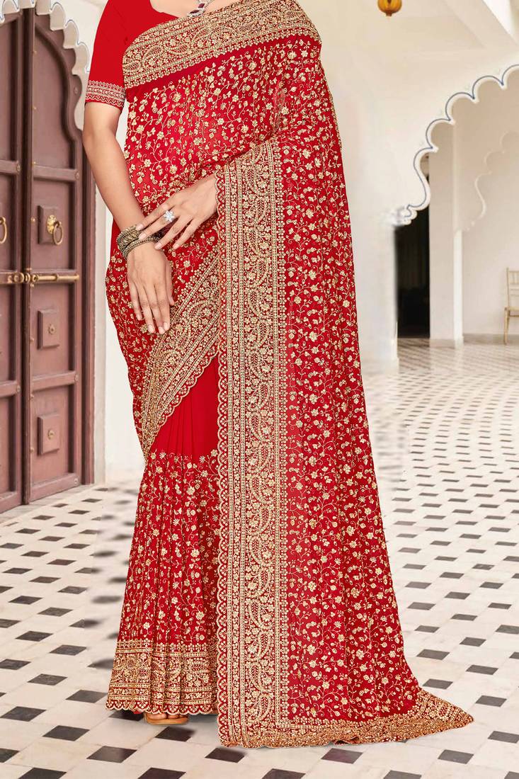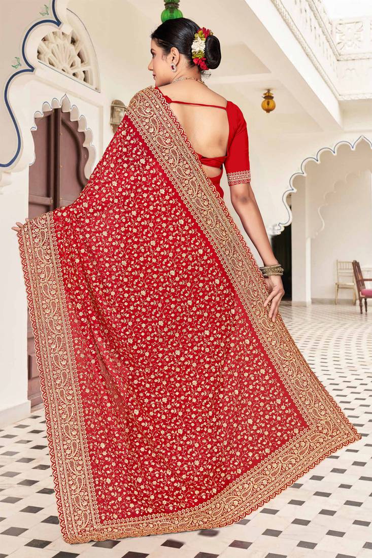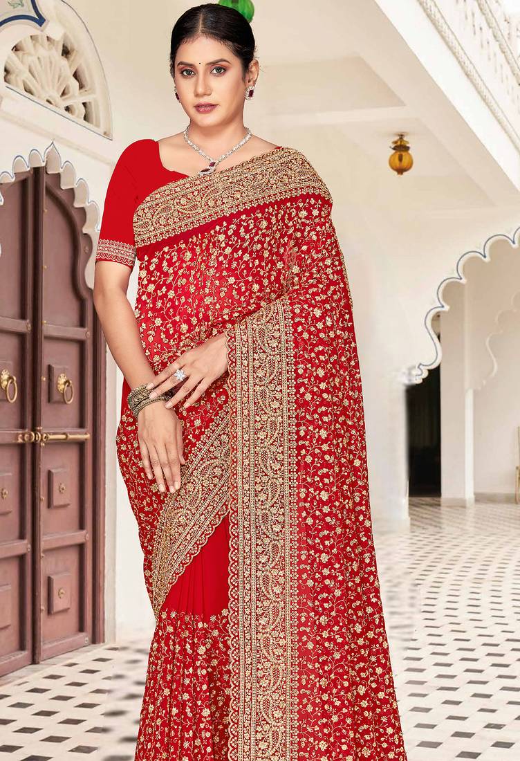 | Product Name | Red Zarkan Embroidered Georgette Designer Saree For Women | |