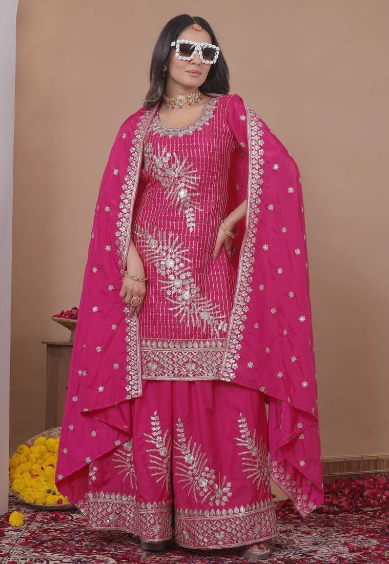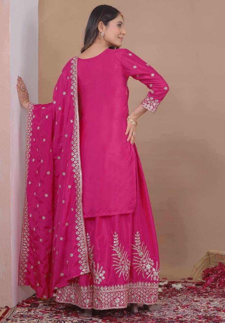 | Product Name | Pink Natural Creap Silk Party Wear Sharara Suit Set | |