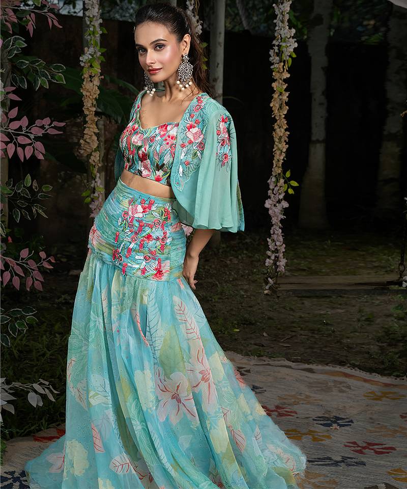 | Product Name | Blue Printed Organza Co Ord Set | |