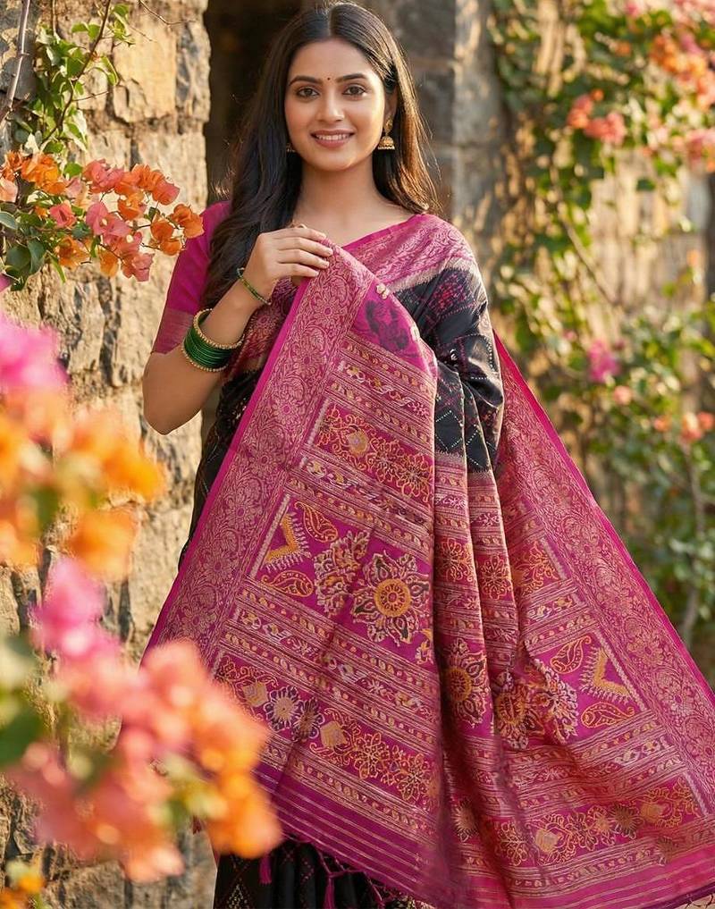 | Product Name | Black Color Pochampally Silk Zari Woven Women's Indian Saree | |