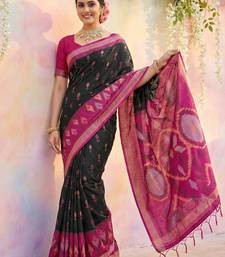 Black color soft silk zari woven women's indian saree