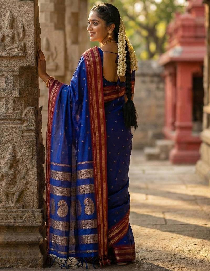 | Product Name | Blue Color Soft Silk Zari Woven Women's Beautiful Saree With Blouse | |