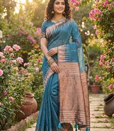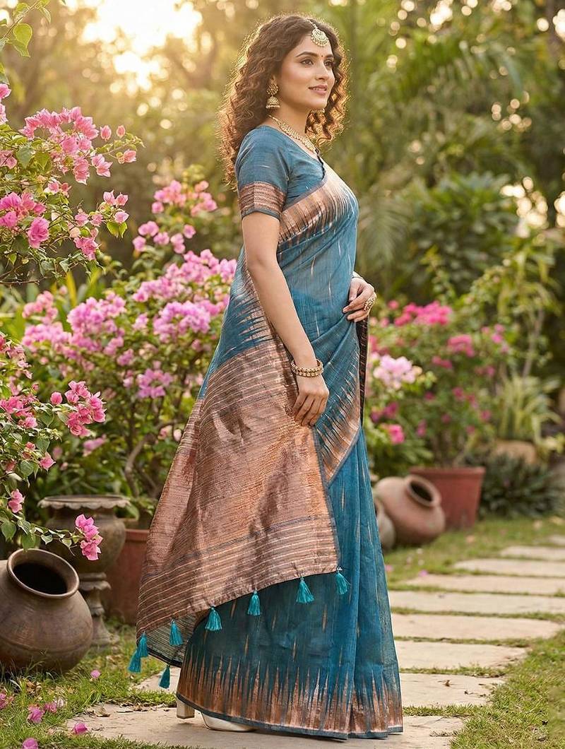 | Product Name | Blue Color Temple Border Zari Woven Linen Cotton Saree | |
