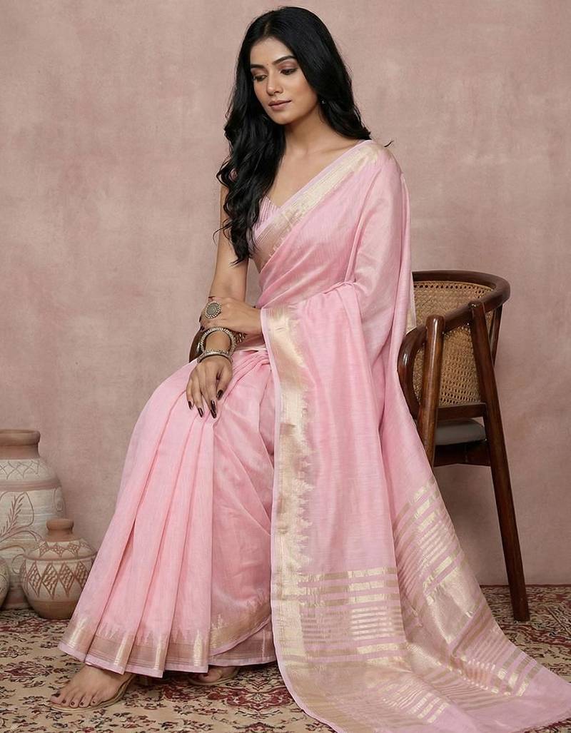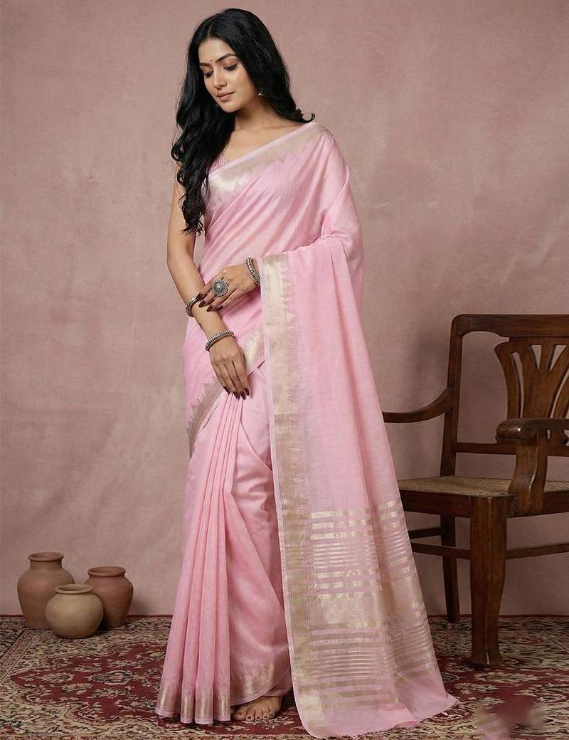 | Product Name | Light Pink Color Cotton Zari Temple Border Casual Saree With Blouse | |