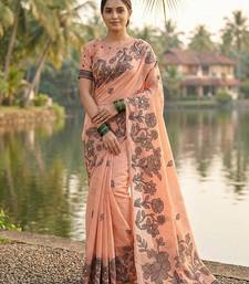 Orange linen cotton print & embroidered work saree with blouse