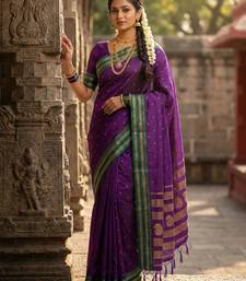 Purple color soft silk zari woven women's beautiful saree with blouse
