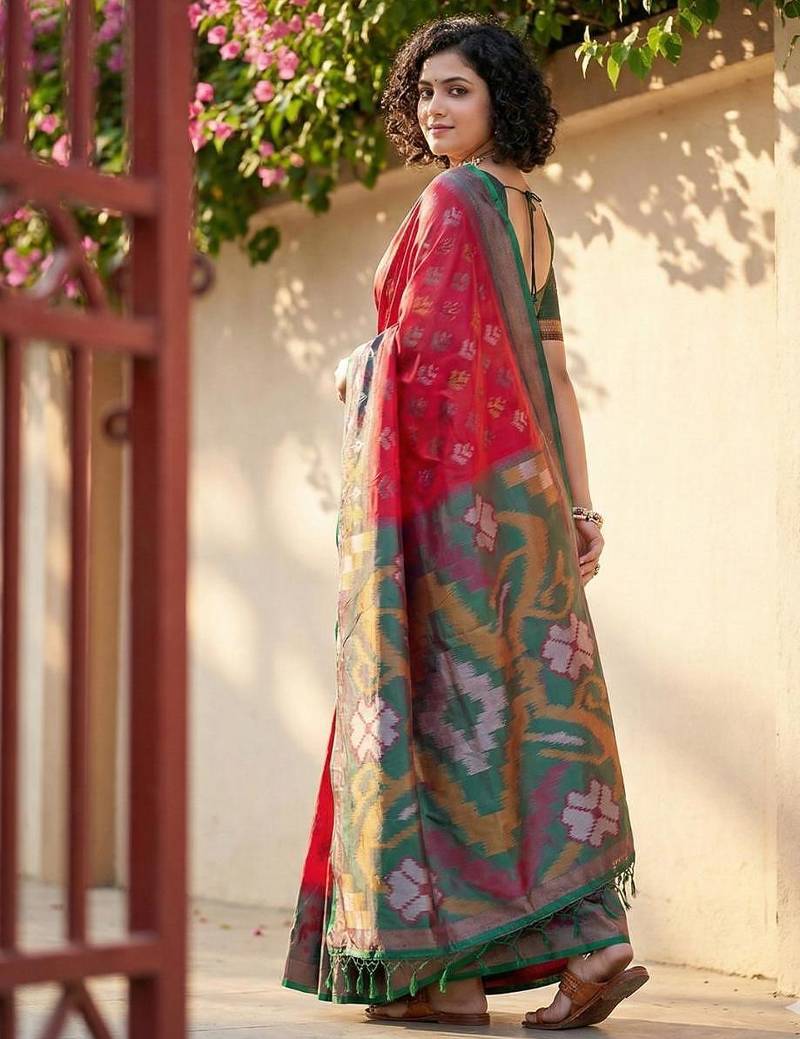 | Product Name | Red Color Pochampally Silk Zari Woven Women's Indian Saree | |