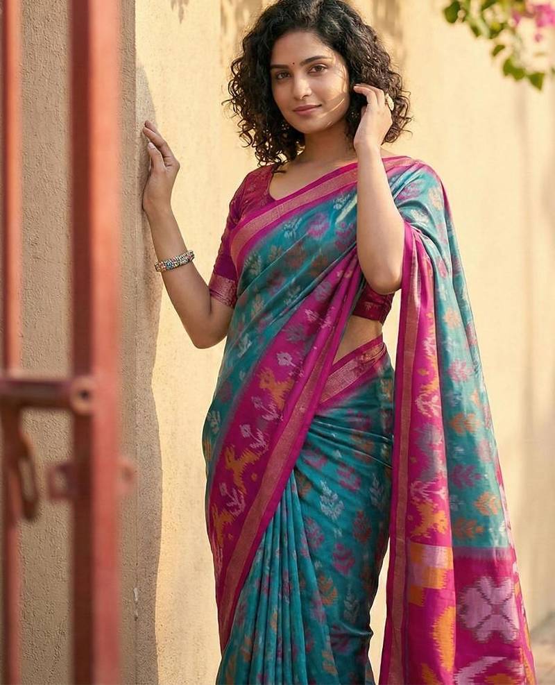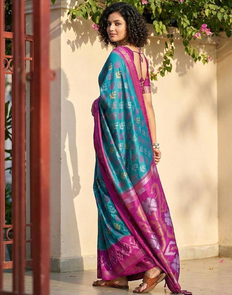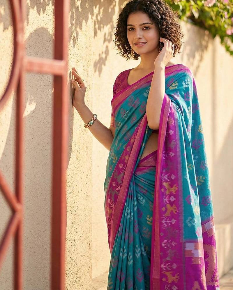 | • | Saree | : | Color- Sky Blue / Fabric- Pochampally |