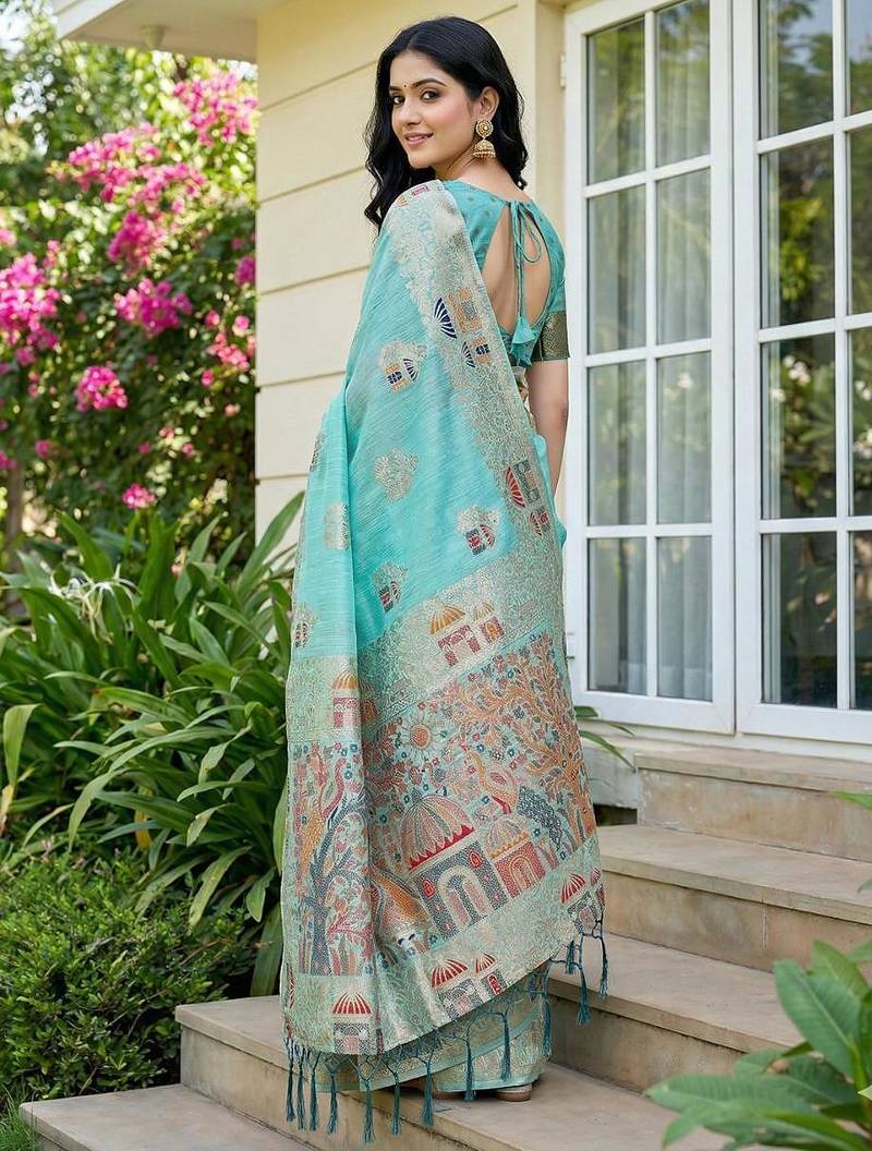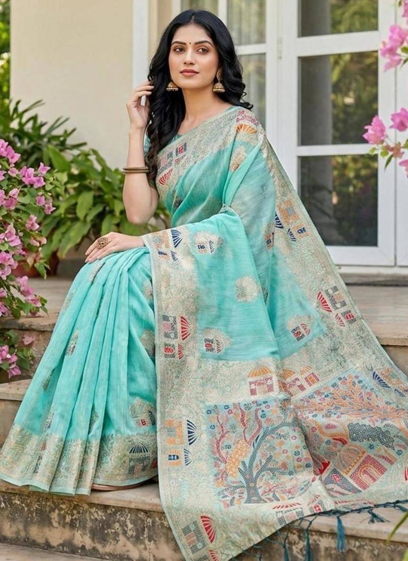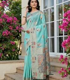 | Product Name | Sky Blue Color Woven Work Soft Linen Cotton Saree With Blouse | |