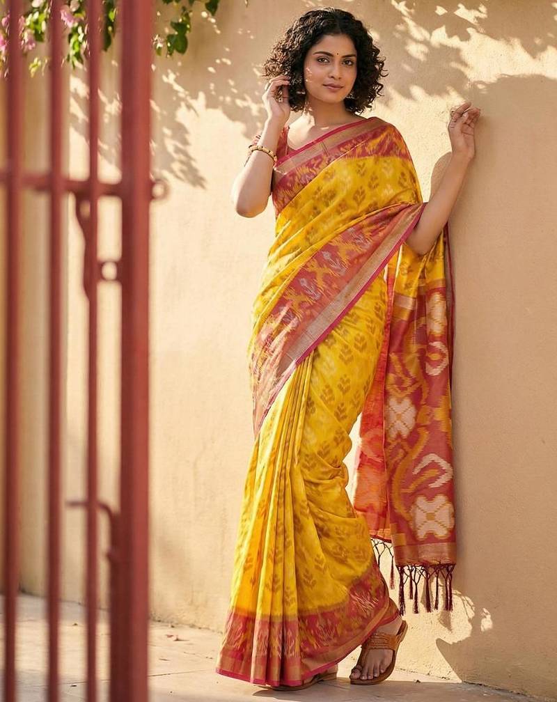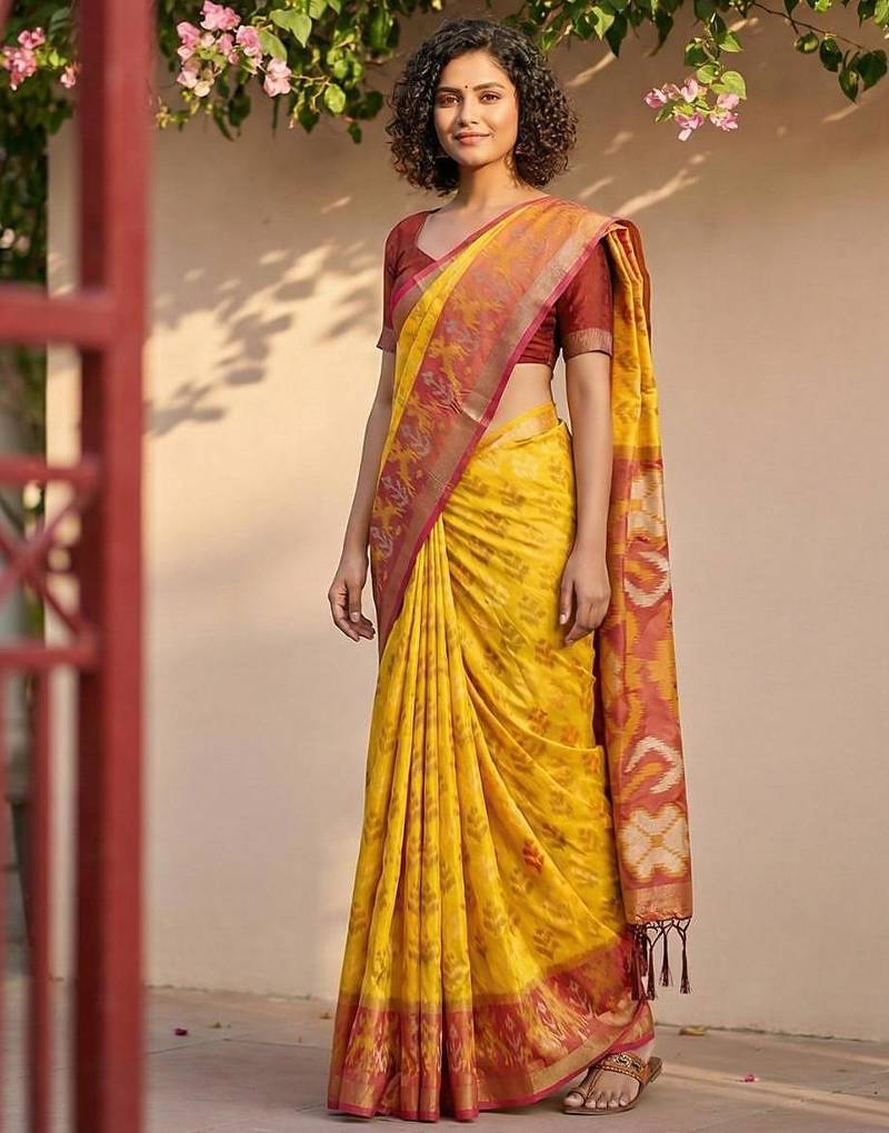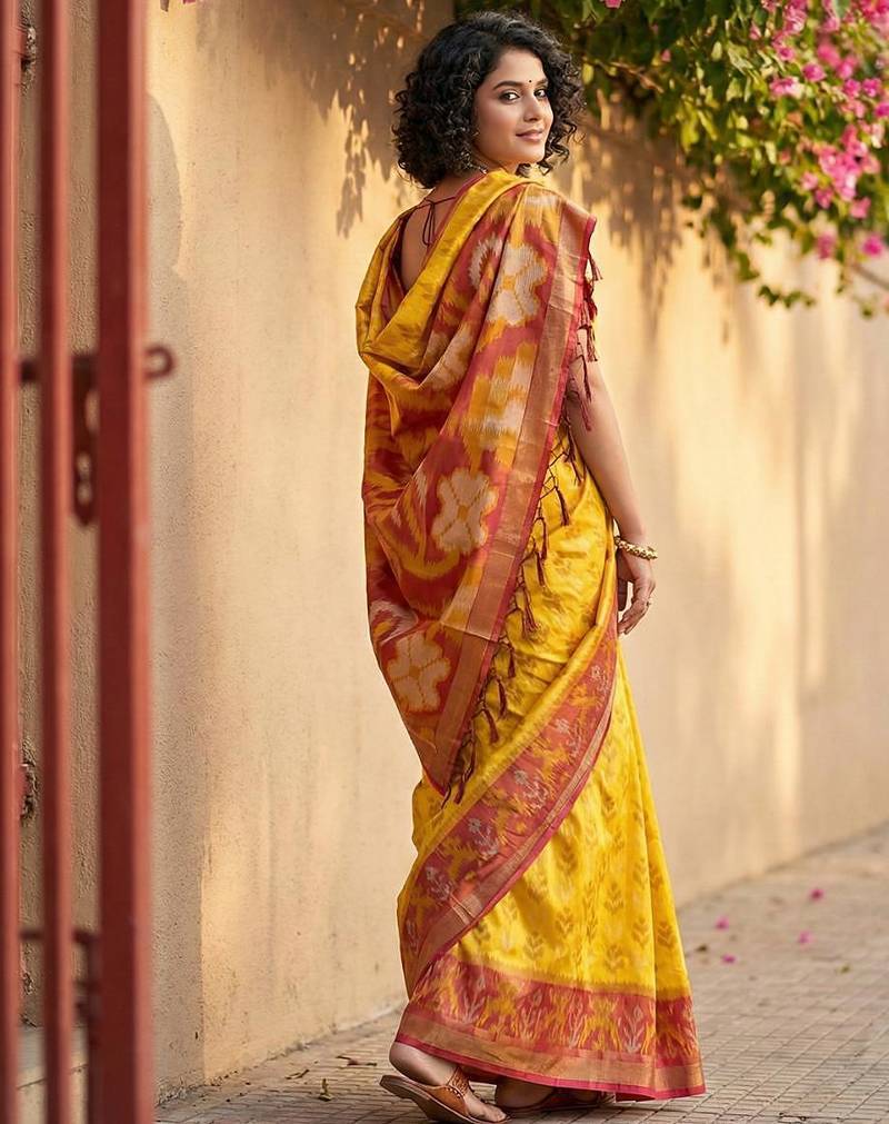 | Product Name | Yellow Color Pochampally Silk Zari Woven Women's Indian Saree | |