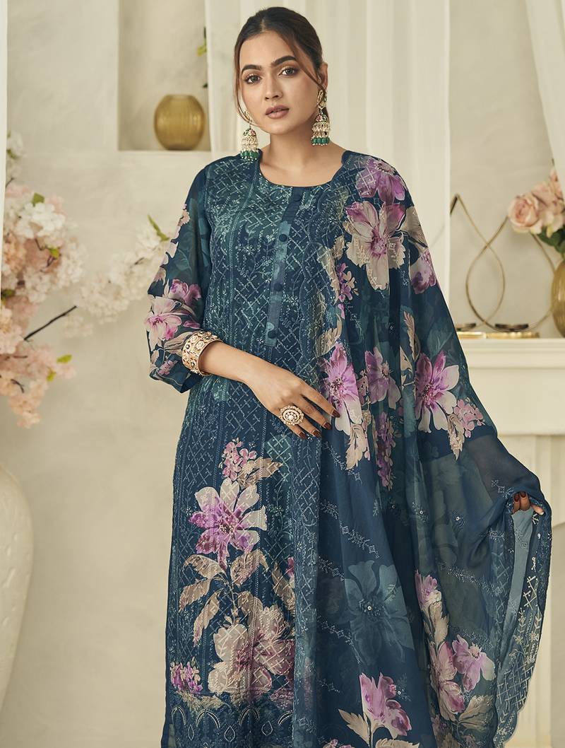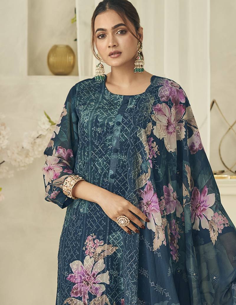 | Product Name | Teal Pure Georgette Embroidered Dress Material | |
