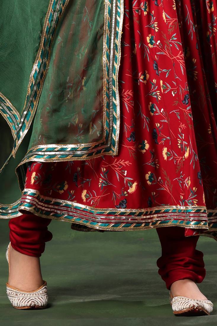 | Product Name | Red & Green Floral Printed With Border Work Cotton Blend Flared Ethnic Anarkali Style Girls Kurta Set With Dupatta | |