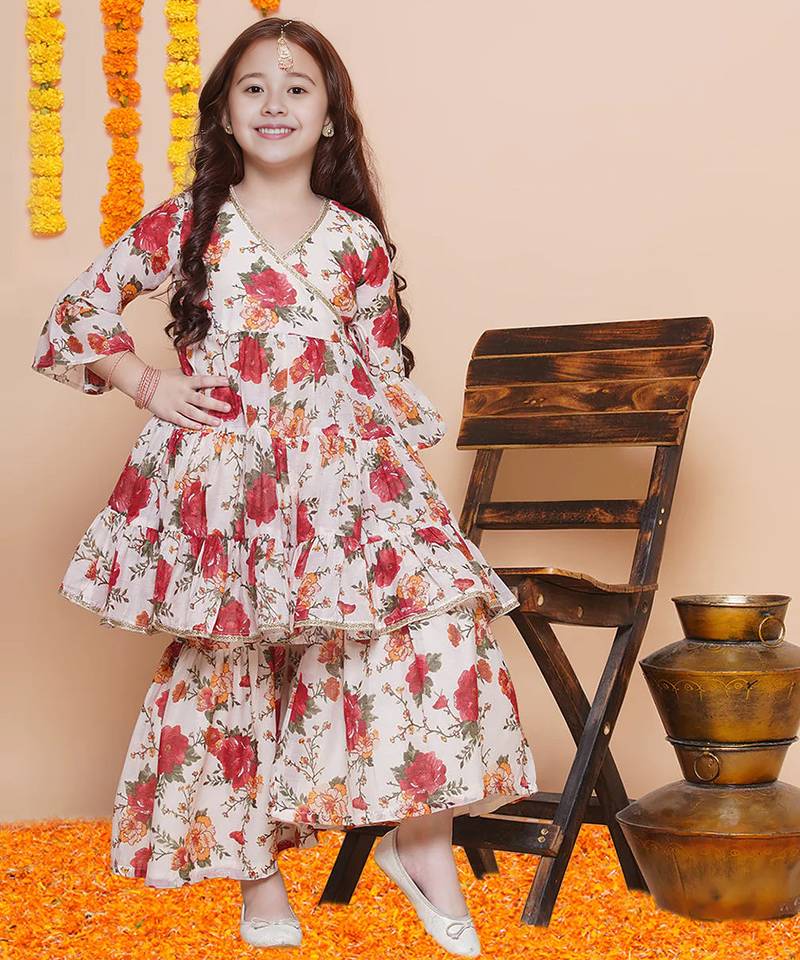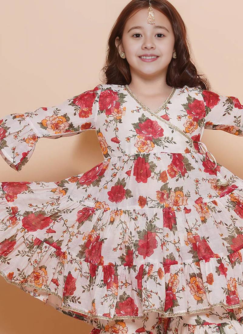| Product Name | Red & Orange Floral Print Printed Floral Print Design Lightweight Fabric Flared Peplum Kurti Girls Ethnic Sharara Set | |
