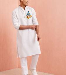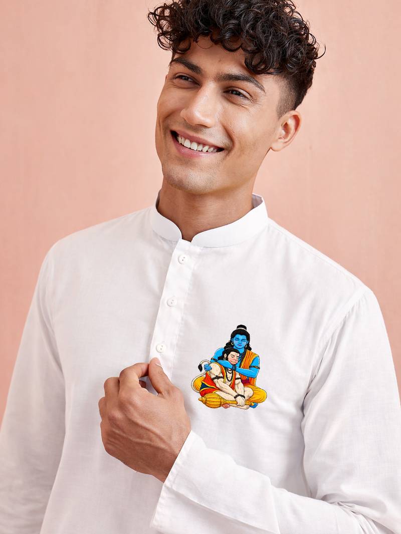 | Product Name | White Cotton Mens Kurta Set With Hanumanji Print | |