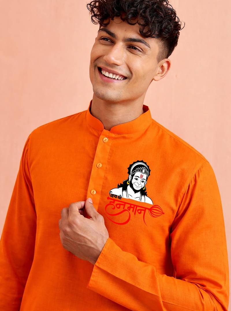 | Product Name | Orange Cotton Kurta Set With Hanumanji Placement Print | |