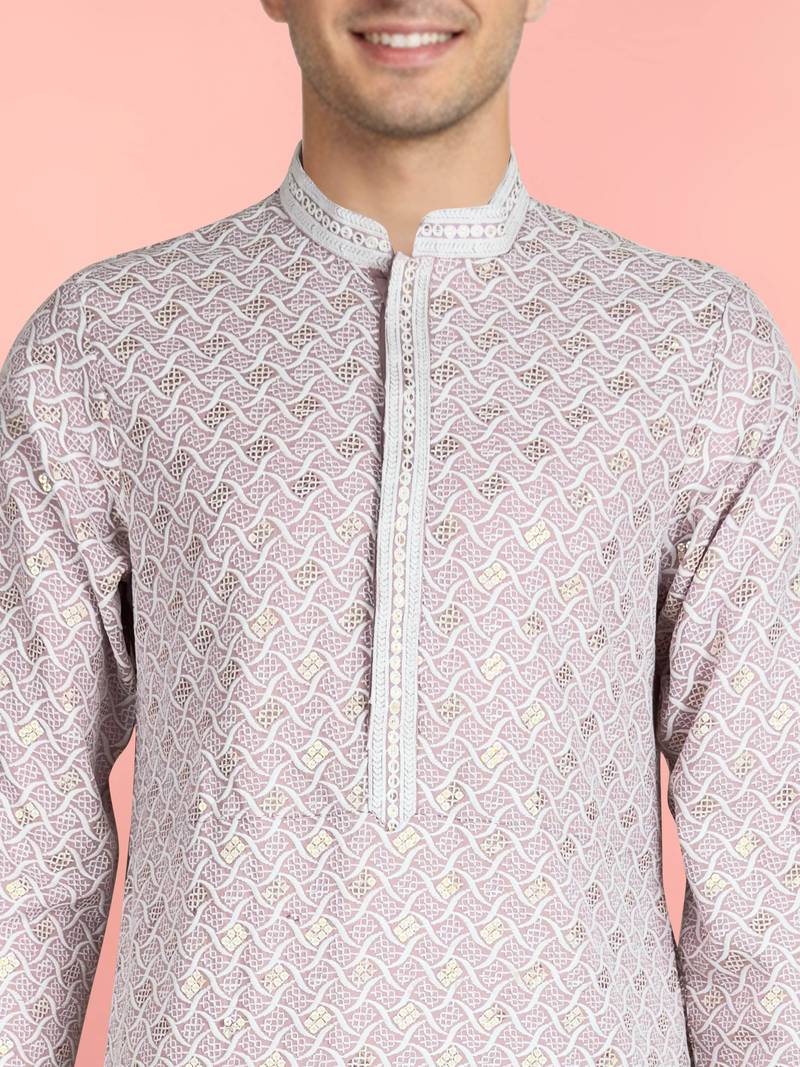 | Product Description | This Men's Onion Colored Rayon Kurta Features All Over Sequin Embroidery In Geometric Patterns, Combining Traditional Craftsmanship With A Contemporary Aesthetic. It Has A Straight Cut, Knee Length Silhouette With A Mandarin Collar, Full Sleeves, And Side Slits For Ease Of Movement. Crafted From Premium Rayon, It Offers A Smooth Texture And Comfortable Wear During Long Festive Hours. Functional Inseam Pockets Provide Practical Use. Suitable For Weddings, Festive Celebrations, And Special Occasions, This Kurta Pairs Well With White Or Cream Churidar And Traditional Footwear. The Embroidered Details Add Subtle Shimmer, Giving The Kurta A Balanced, Polished, And Modern Ethnic Appearance For Formal Or Festive Gatherings. |
