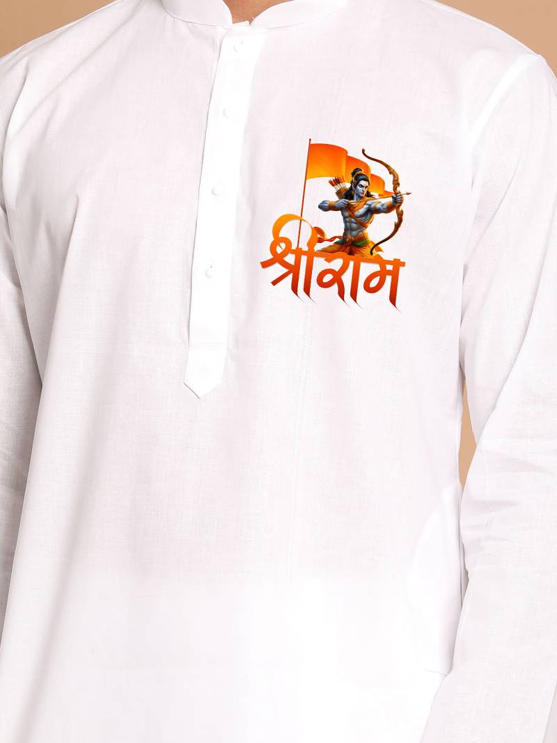 White cotton kurta set with shri ram printed work