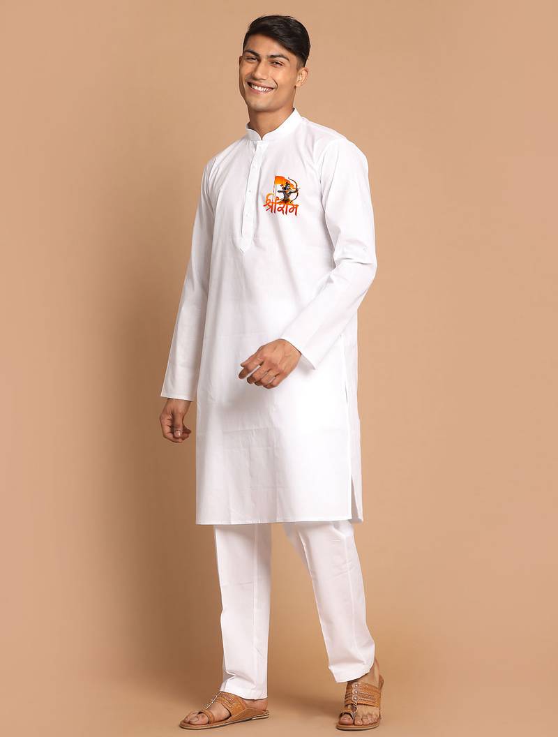 | Product Name | White Cotton Kurta Set With Shri Ram Printed Work | |