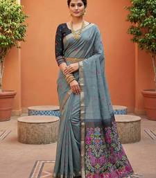 Grey muga cotton meenakari & azarakh pallu saree with contrast blouse