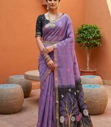 Lavender muga cotton meenakari & azarakh pallu saree with contrast blouse