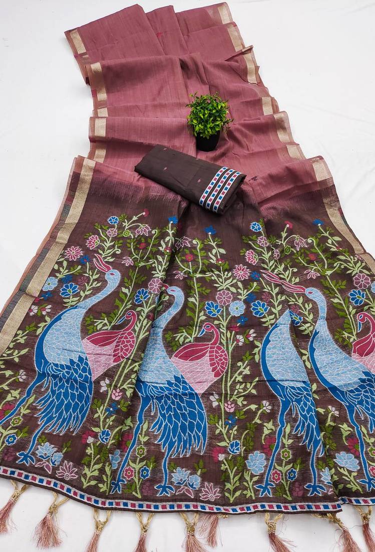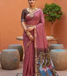Mauve muga cotton meenakari & azarakh pallu saree with contrast blouse