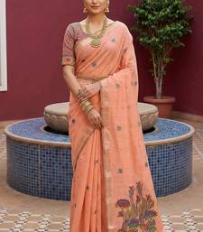 Peach muga cotton meenakari & azarakh pallu saree with contrast blouse