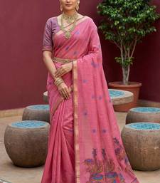 Pink muga cotton meenakari & azarakh pallu saree with contrast blouse