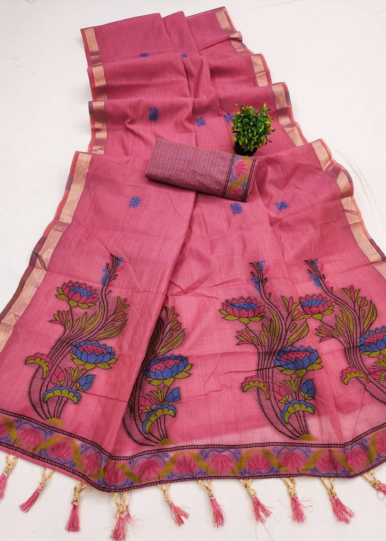 | • | Saree | : | Color- Pink / Fabric- Pure Cotton |