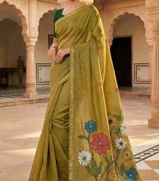 Yellow muga cotton meenakari & azarakh pallu saree with contrast blouse