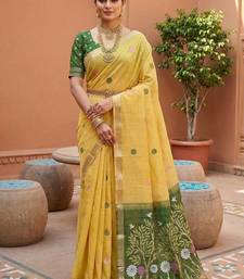 Yellow muga cotton meenakari & azarakh pallu saree with contrast blouse