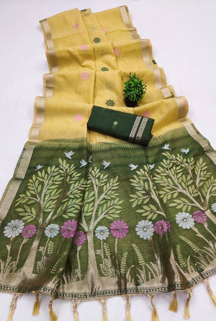 | • | Saree | : | Color- Yellow / Fabric- Pure Cotton |